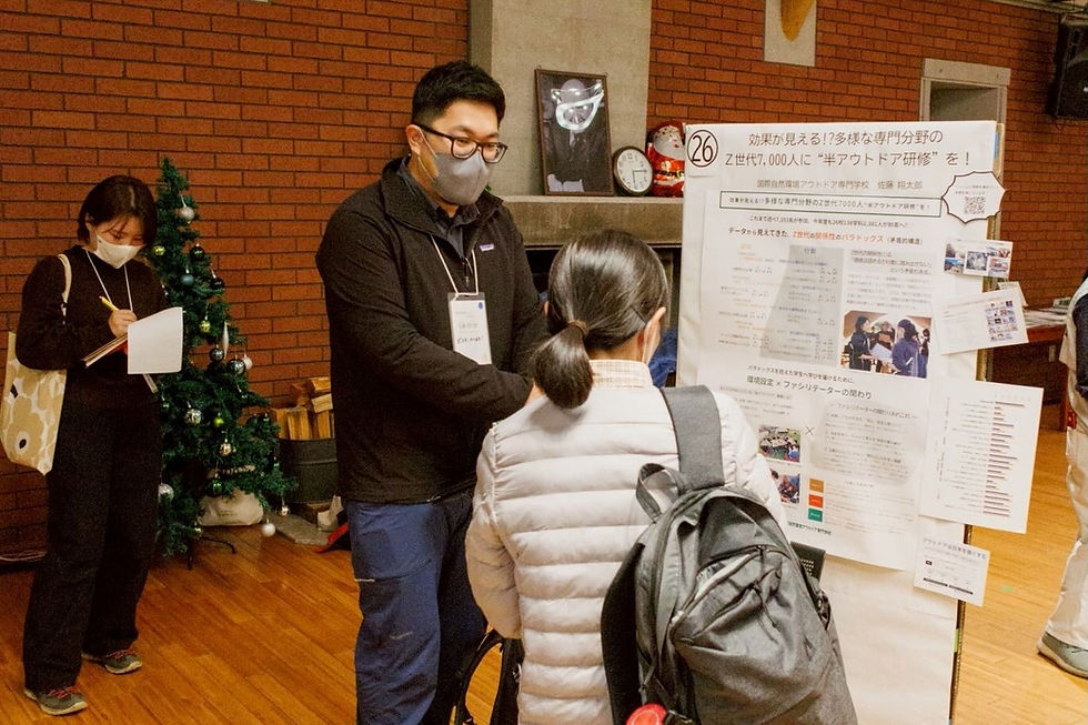 12/1(金)-3(日)の3日間、公益財団法人日本環境教育フォーラム様 主催の清里ミーティングにて私たちが取り組んでいる「半アウトドア研修」の実践事例について、ポスター発表という形で共有してきました。